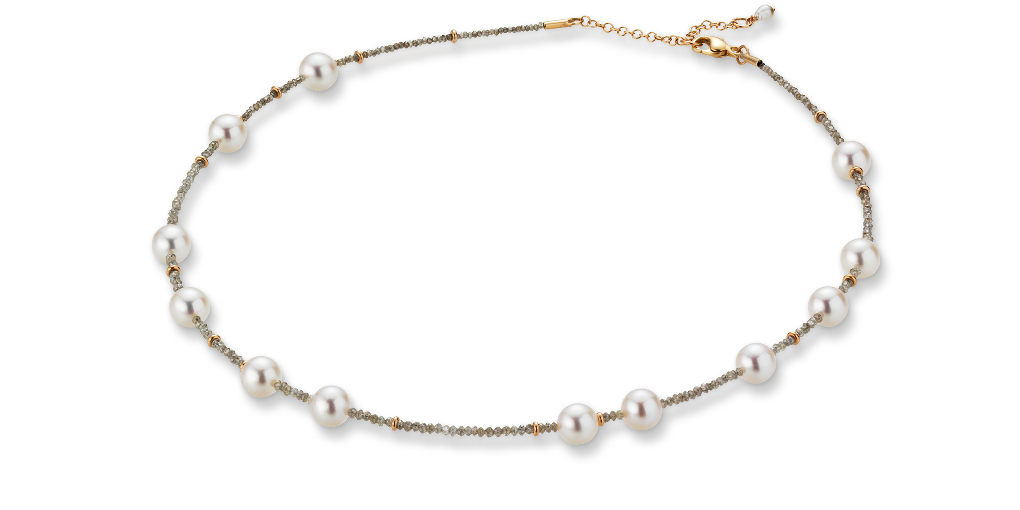 Diamant Beads ca. 5,976 ct. – 7,304 ct. hellgrau, Südsee Zuchtperle oval 7-8 mm