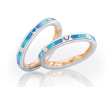 Während der Solitärring DANKE FÜR sagt, gibt UNSERE ZEIT als Beisteckring gleich die passende Antwort – optisch ebenso wie symbolisch. Entdecken Sie den Ring aus strahlendem 18 karätigen Weißgold und blauer Kaltemaille in Meeresfarben bei uns vor Ort.